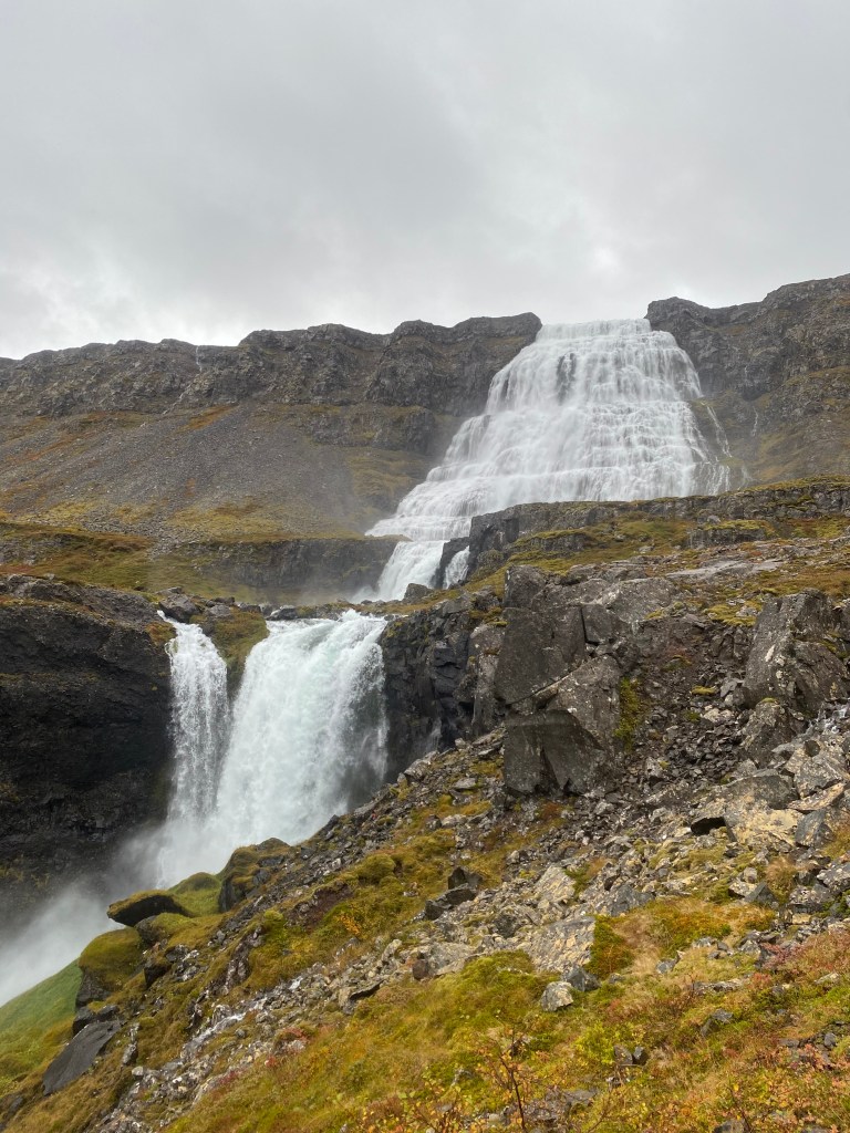 A few of us took a trip to Dynjandi (meaning thundering noise), a stunning waterfall that tumbles down hard basalt layers and stands 99 meters high, 30 meters wide at the top, and 60 meters wide at the bottom.