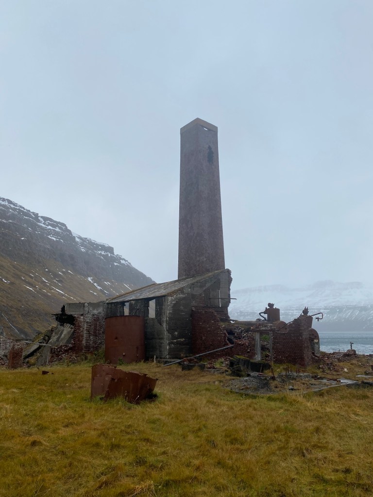 We ate lunch outside the deserted village of Hesteyri , if memory serves. The ruins are The Hesteyri Whaling Factory, a Norwegian Whaling factory from 1894, which eventually shifted to processing herring, before closing in 1940.